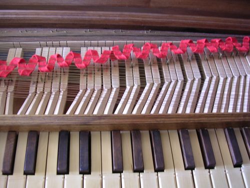 Détail du clavier et de la bande de feutre entourant les cordes.