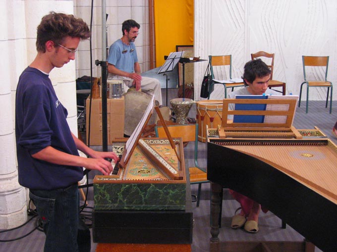 Répétition pour le spectacle "La Barca di Venezia per Padova" de Adriano Banchieri Angoulême juillet 2004 .