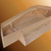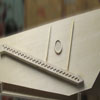 La caisse est en cyprès, comme l'original les marches sont recouvertes d'ébène, les feintes sont composées d'un assemblage de deux pièces d'érable et une d'ébène. Les sautereaux sont en poirier, languettes en houx. La table est en épicéa, décorée d'une rosace en bois et parchemin.