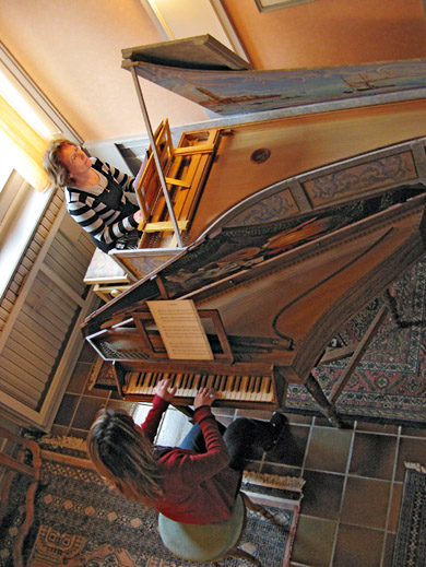 Nicole, "jeune retraitée" s'est remise au clavecin. Florence, en bon professeur lui prodigue quelques cours . Le 26 février 2007.