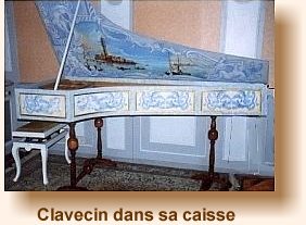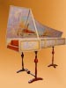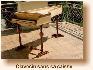 CLAVECIN ITALIEN SourceLe plus ancien instrument conservé est le Da Bologna de 1521, mais nous avons des traces de plusieurs facteurs qui oeuvraient déjà en 1419 en Italie. Contrairement aux autres pays, du XVI e au XVIII e la facture italienne évolue très peu. Elle est basée sur le principe de la "juste proportion" suivant lequel, pour obtenir l'octave inférieure il suffit de doubler la longueur de la corde. Pour l'extrême basse, une correction se faisait en raccourcissant un peu les cordes et en augmentant le diamètre pour ne pas avoir des instruments trop longs. Ils ont en principe un seul clavier avec deux jeux de huit pieds. L'instrument est en cyprès, souvent la table aussi dans les instruments plus anciens. La caisse est très mince et la "charpente " légère. Comme l'instrument est assez fragile, on avait l'habitude de le protéger par une caisse dite "de transport"; on le sortait pour le jouer. Si l'instrument est laissé en bois simplement huilé, la caisse est très décorée. Il existe aussi une variante dite en " fausse caisse ". C'est une caisse en trompe l'œil. Il s'agit en fait de rapporter sur le bord supérieur, à l'intérieur de l'instrument, les mêmes petites moulures que celles d'un clavecin normal, ce qui donne l'impression d'un instrument glissé dans sa caisse. Cela se faisait à une époque où l'on avait perdu l'habitude de sortir l'instrument pour le jouer. Le piètement contribue au décor d'une manière baroque avec parfois des personnages sculptés ou composé de grosses colonnes tournées.