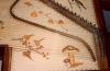 La table est peinte dans des couleurs automnales; fleurs, feuilles et champignons, oiseaux et insectes. Le couvercle est peint d'une scène musicale dont les éléments sont empruntés à différents tableaux anciens.